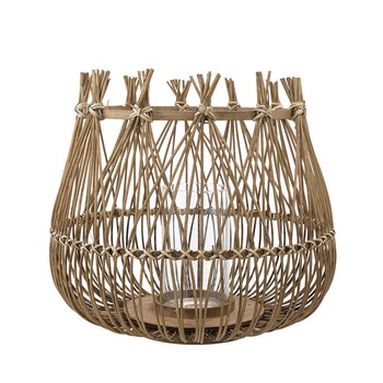 Lantern w/Glass, Nature, Bamboo Ø32xH32 cm
